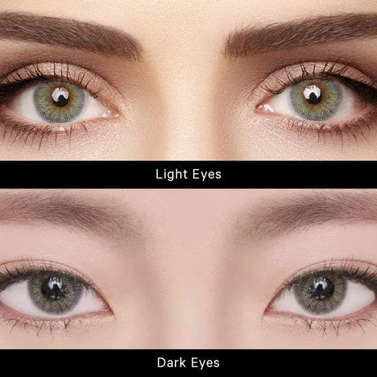 Close-up of a model wearing red color contact lenses with bold design, enhancing eye appearance for a striking and dramatic cosplay look.Close-up of a red colored contact lens with detailed design, resting on a reflective surface, ideal for cosplay or bold eye enhancements.