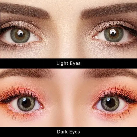Color visibility depends on your natural eye color. If you have dark brown eyes, lighter or enhancement tint lenses may not show up as vibrantly. That’s why we recommend choosing opaque or vibrant vivid lenses, which are designed with strong pigmentation to effectively cover darker irises. These lenses offer a more noticeable and dramatic color change, allowing the intended shade whether blue, gray, green, or violet to appear more true to how it looks in the packaging.