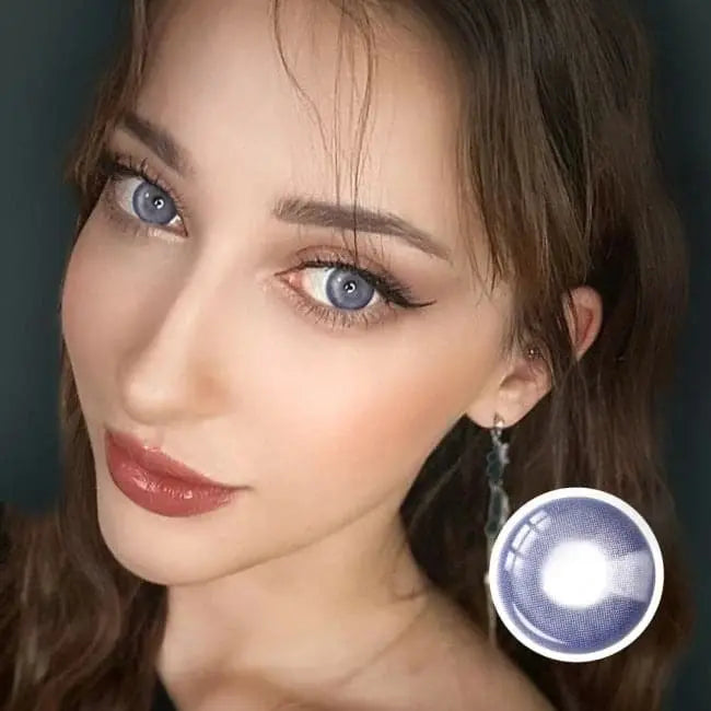 Color visibility depends on your natural eye color. If you have dark brown eyes, lighter or enhancement tint lenses may not show up as vibrantly. That’s why we recommend choosing opaque or vibrant vivid lenses, which are designed with strong pigmentation to effectively cover darker irises. These lenses offer a more noticeable and dramatic color change, allowing the intended shade whether blue, gray, green, or violet to appear more true to how it looks in the packaging.