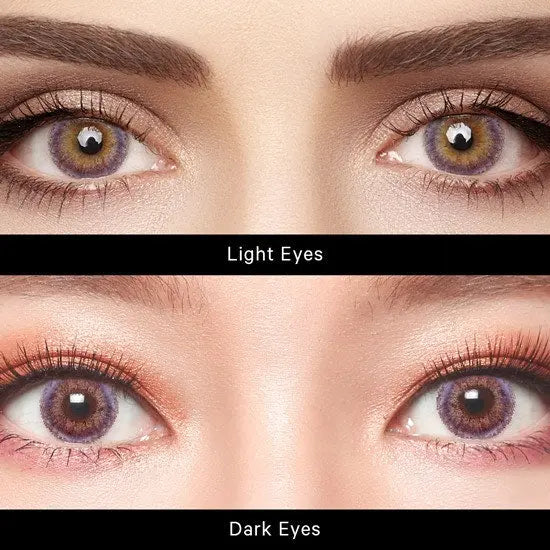 Color visibility depends on your natural eye color. If you have dark brown eyes, lighter or enhancement tint lenses may not show up as vibrantly. That’s why we recommend choosing opaque or vibrant vivid lenses, which are designed with strong pigmentation to effectively cover darker irises. These lenses offer a more noticeable and dramatic color change, allowing the intended shade whether blue, gray, green, or violet to appear more true to how it looks in the packaging.